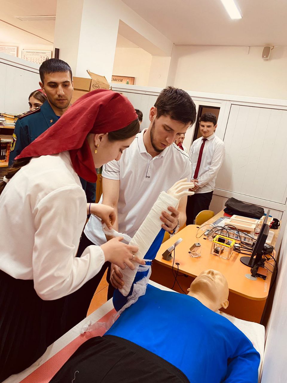 29.04.202229.04.2022 г. Согласно плану в МБОУ «СОШ №5 с. Ачхой-Мартан руководителем ОБЖ Гадаевым А.В. совместно сотрудниками МЧС Безаевым Х.Д и Макаевым И.В. провели открытый урок на тему "Пожарная безопасность" Главными задачами открытого урока являлись: - пропаганда культуры безопасности жизнедеятельности среди подрастающего поколения; - популяризация профессий спасателя и пожарного; - выработка у обучающихся практических навыков умения осуществлять мероприятия по защите в ЧС, оказание первой медицинской помощи. Цель урока: дать учащимся представление о значении огня в жизнедеятельности человека, о причинах возникновения пожаров и их возможных последствиях для безопасности человека, а также сформировать у учащихся убеждение в необходимости знать правила пожарной безопасности и соблюдать их в повседневной жизни. В ходе урока обучающиеся ответили на вопросы о правилах поведения при возникновении ЧС.