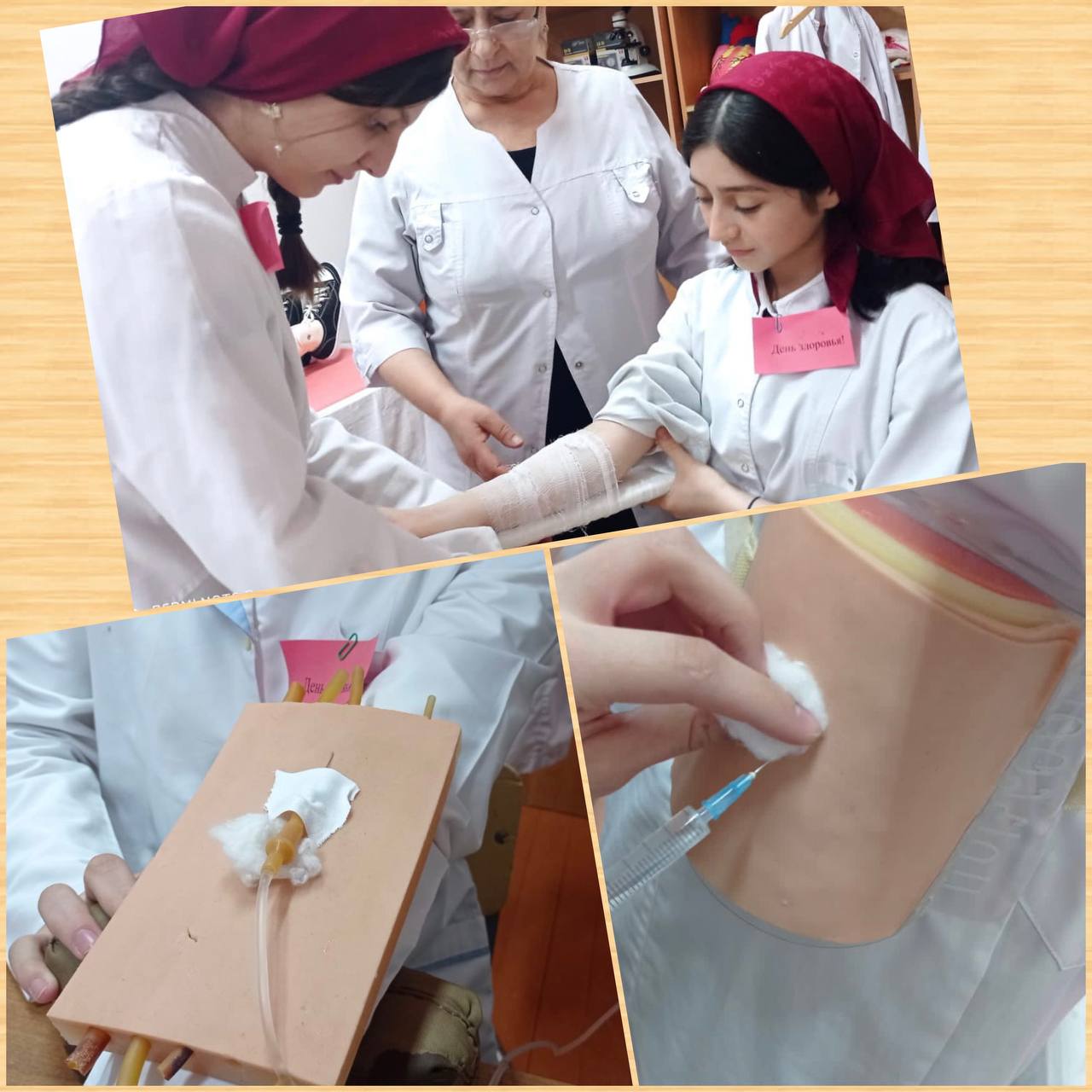 Ко «дню здоровья» было проведено мероприятие по оказанию помощи больным и пострадавшим. «Волонтёры медики»