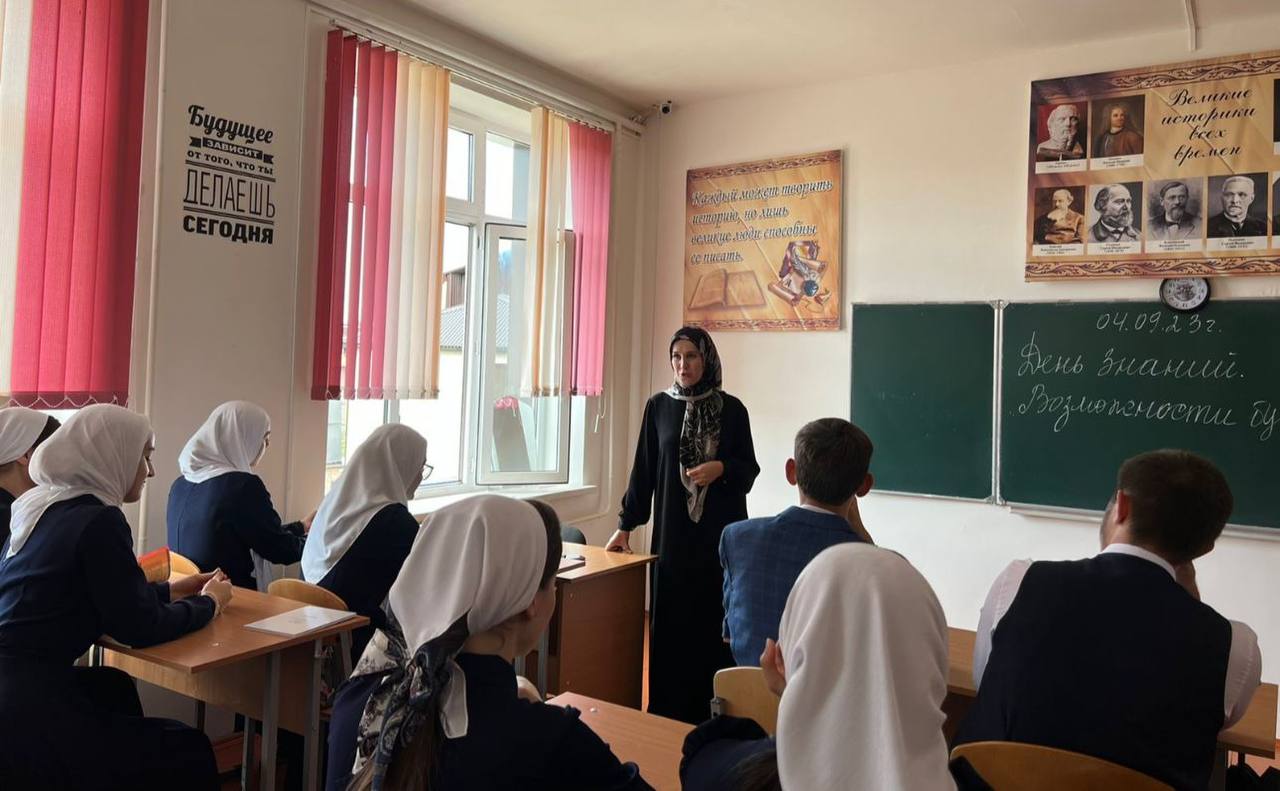 04.09.2023Первый в этом году «Разговор о важном» с учениками 11-го класса сегодня провела директор школы Амриева Мадина Хусеновна. Традиционный классный час был посвящен Дню знаний. Мадина Хусеновна рассказала о важности знаний в современном мире, междисциплинарности, о Всероссийском обществе «Знание». О цифровых, межкультурных и экологических знаниях, о междисциплинарности как о тренде в современном мире. Привела примеры профессий, для освоения которых нужны знания из разных наук. Например, инженер беспилотной авиации занимается как техническим обслуживанием летательных аппаратов, так и программированием. Далее обсудили, почему нужны знания, может ли человек прожить без них и почему важно учиться.