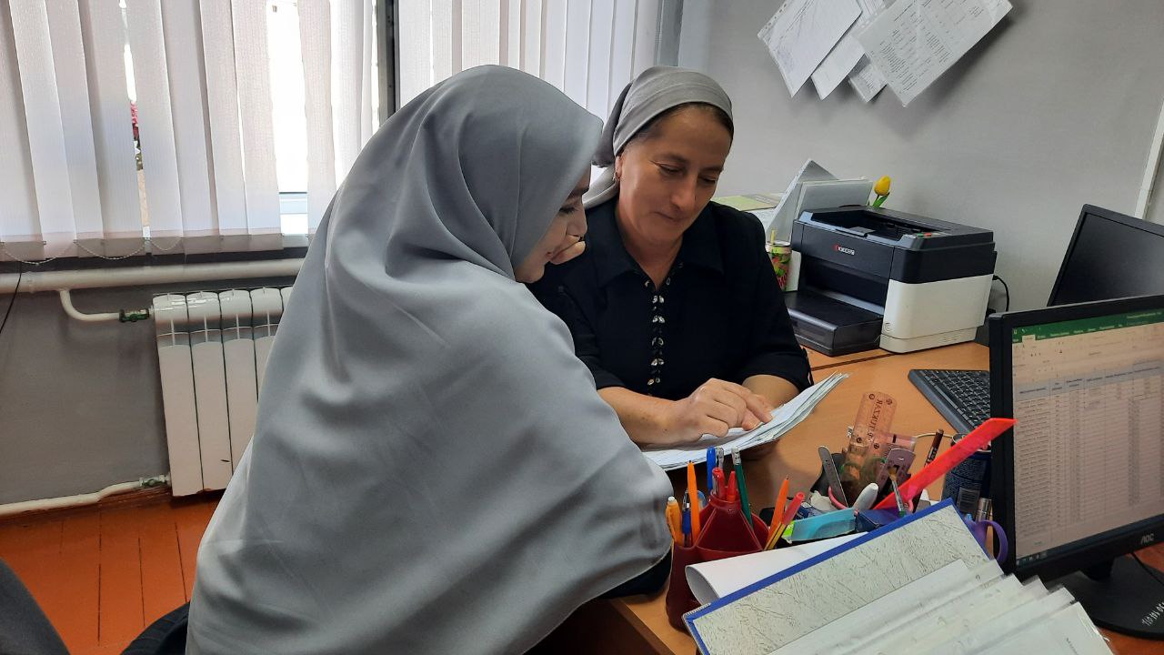 Работа наставника, учителя чеченского языка и литературы М.Л. Сардаловой с молодым педагогом И.А. Гирмахановой.