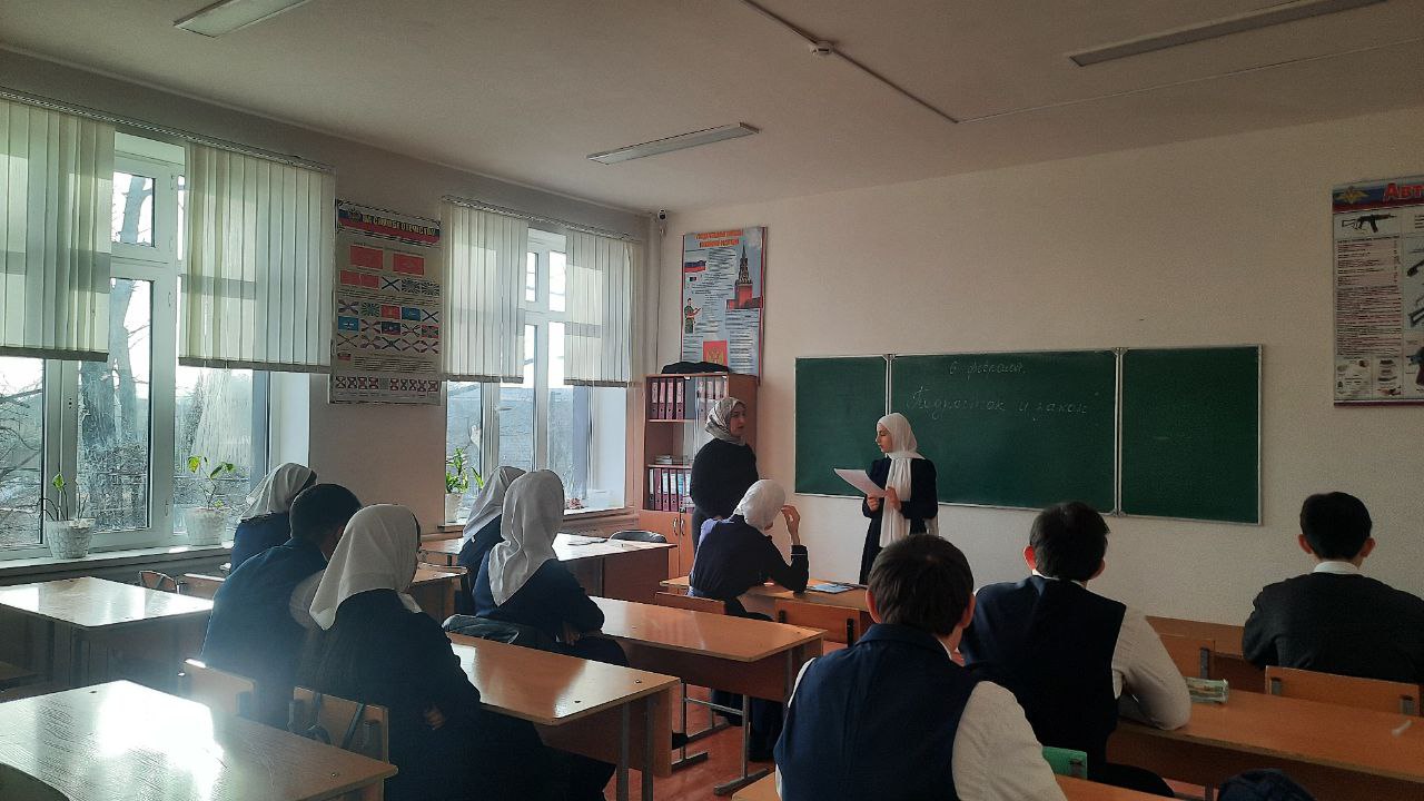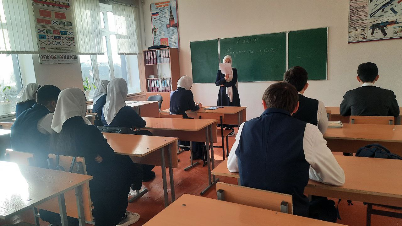 06.02.20246.07.2024 г социальный педагог Шахмурзаева Х.А. провела с обучающимися 9 класса классный час на тему: "Подросток и закон".