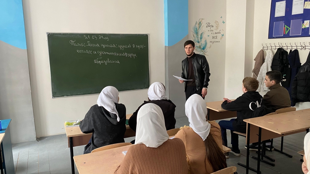 21.03.202421 марта в МБОУ "СОШ 5 с.Ачхой-Мартан" как и во всех школах страны, провели занятие профориентационного курса "РОССИЯ-МОИ ГОРИЗОНТЫ" на тему - Россия умная: узнаю о профессиях и достижениях в сфере образования.Что такое образование? - Это единый процесс воспитания и обучения, его основная цель-интеллектуальное, духовное, творческое, физическое и профессиональное развитие человека. Которое призвано обеспечить разносторонее развитие человека как личностное, так и профессиональное, во благо самого человека и общества.На этом занятии дети узнали, что образование представляет собой отрасль важнейшую составляющую российской экономики, которая объединяет учреждениях, предприятия и организации, занимающиеся обучением, воспитанием, передачей знаний, учебной литературой, подготовкой квалифицированных кадров и т.д. Перед учащимися открылись новые знания, новые дороги и направления в сфере образования.
