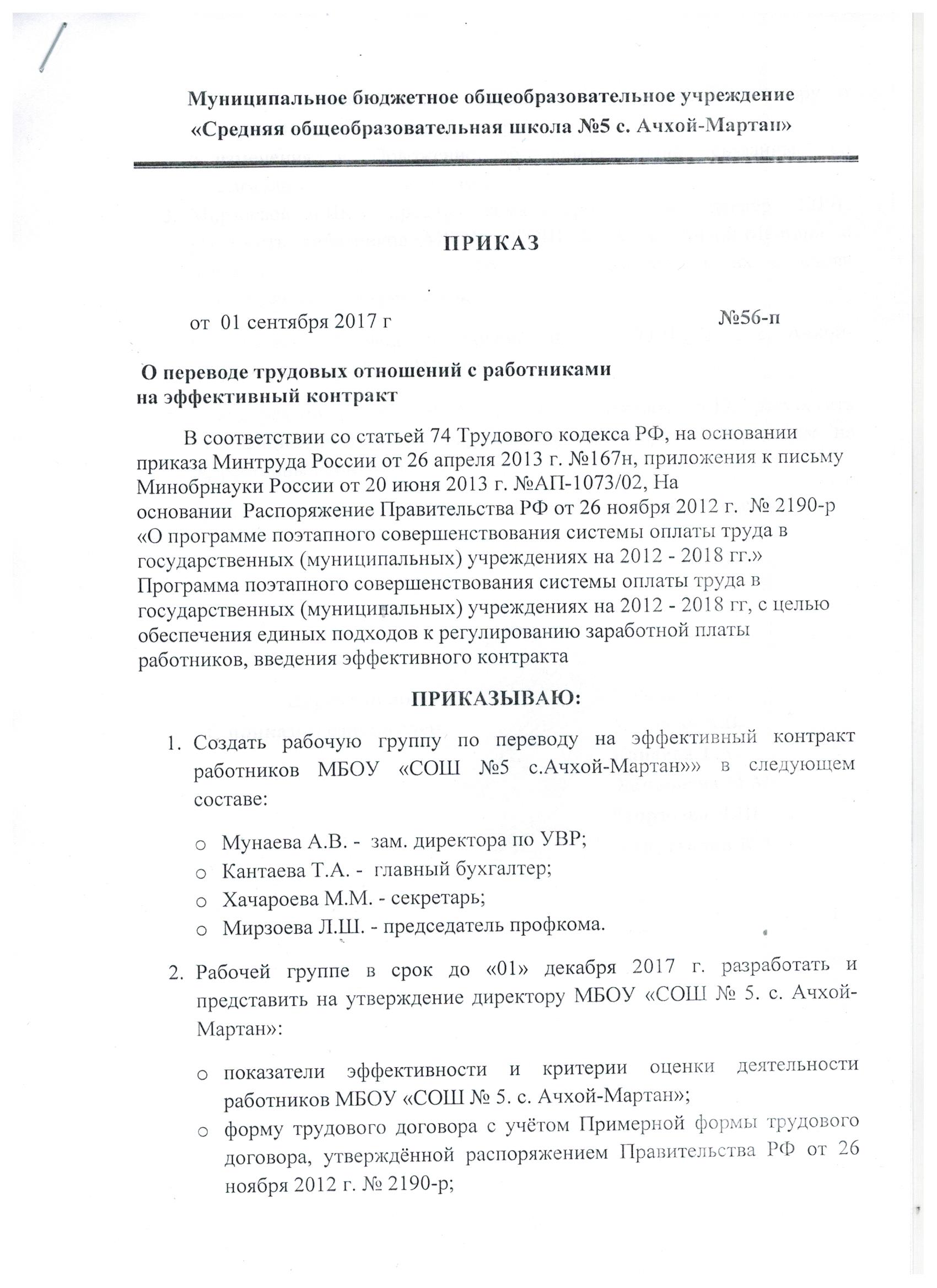 Приказ о переходе на эффективный контракт
