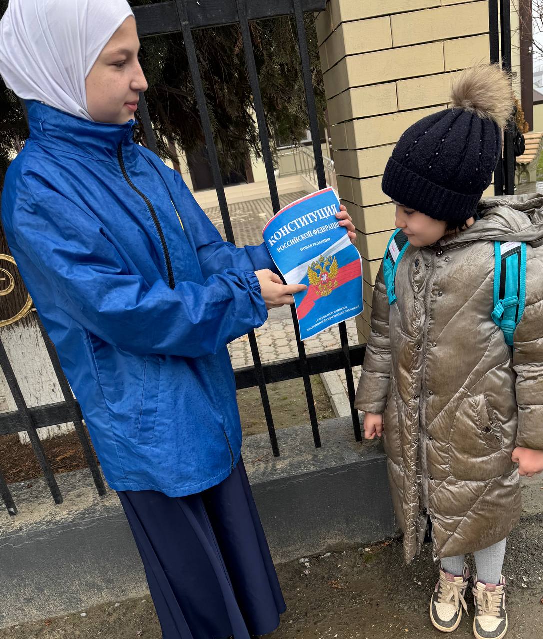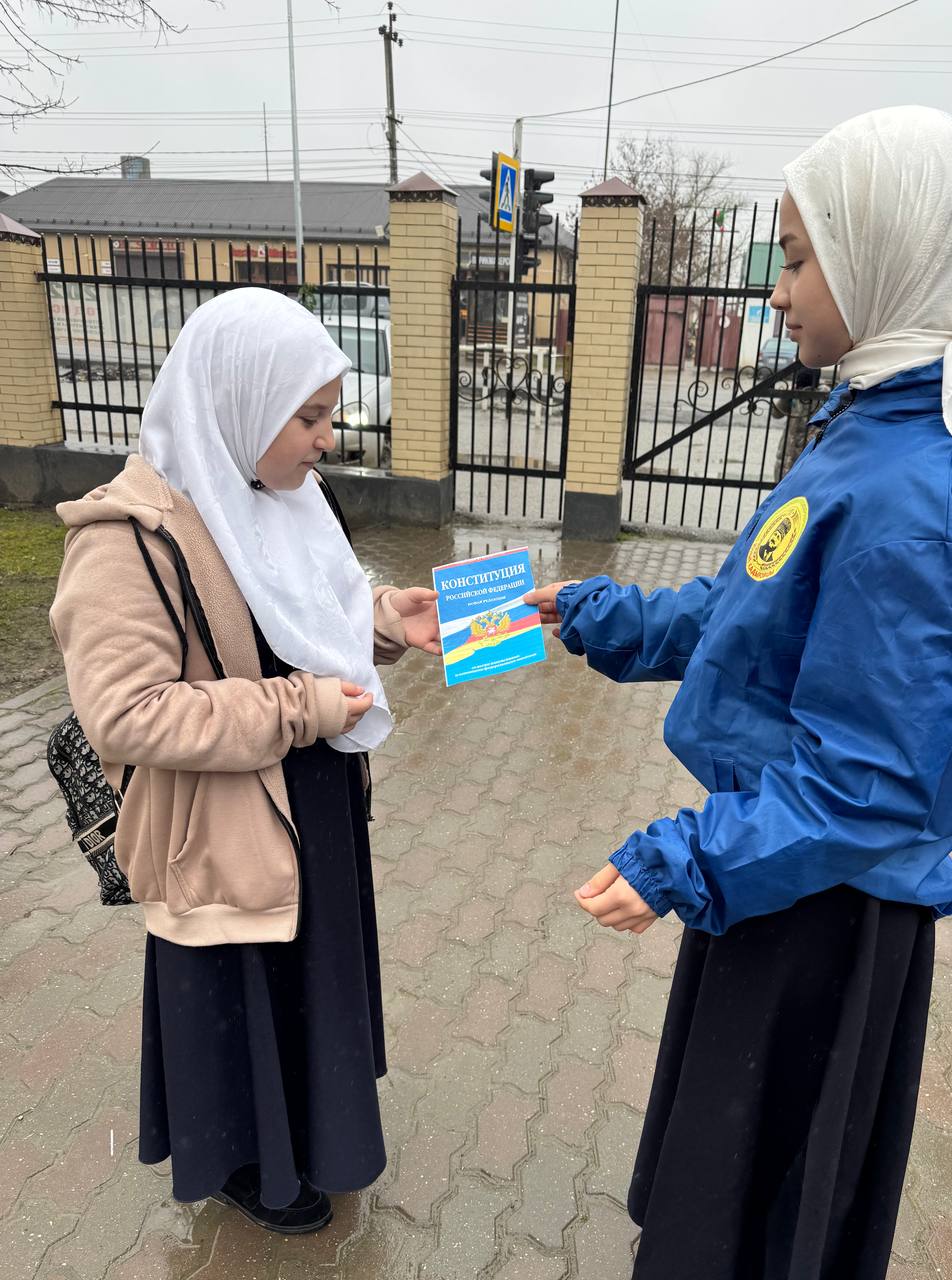 Активисты «Юные Кадыровцы» вышли, чтобы поделиться интересными фактами о Конституции Российской Федерации в честь её дня.