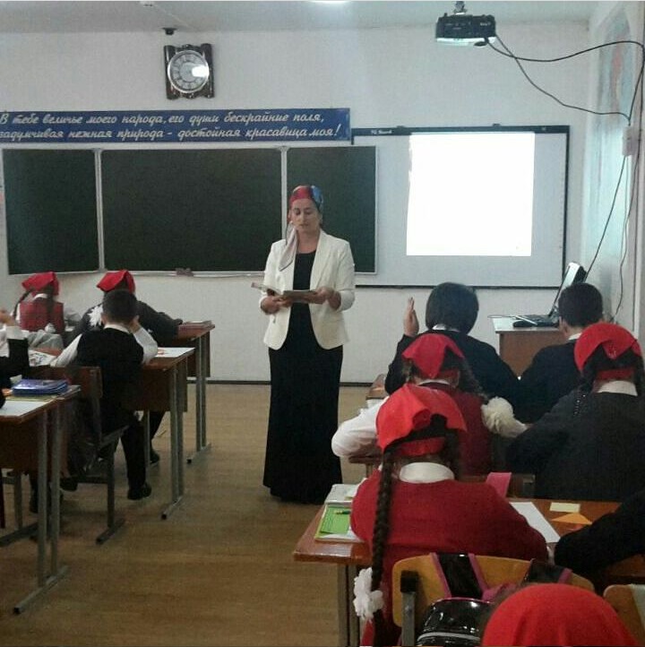Учитель начальных классов Малсагова Айзан Смаиловна проводит конкурсный урок литературного чтения в 4 классе, СОШ №1 с. Ачхой-Мартан. В рамках районного конкурса "Учитель года - 2018".