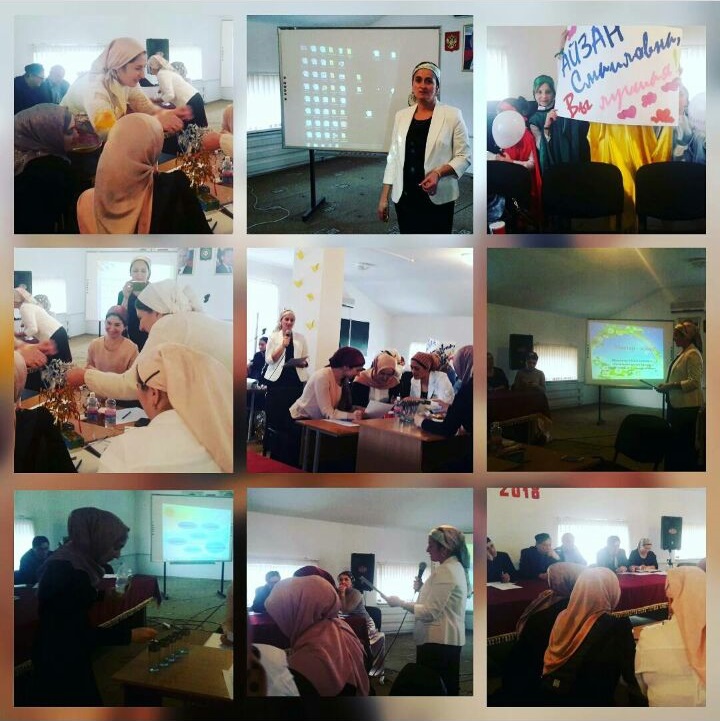Участница районного конкурса "Учитель года - 2018" Малсагова А.С. проводит мастер-класс на тему "Секреты радуги".