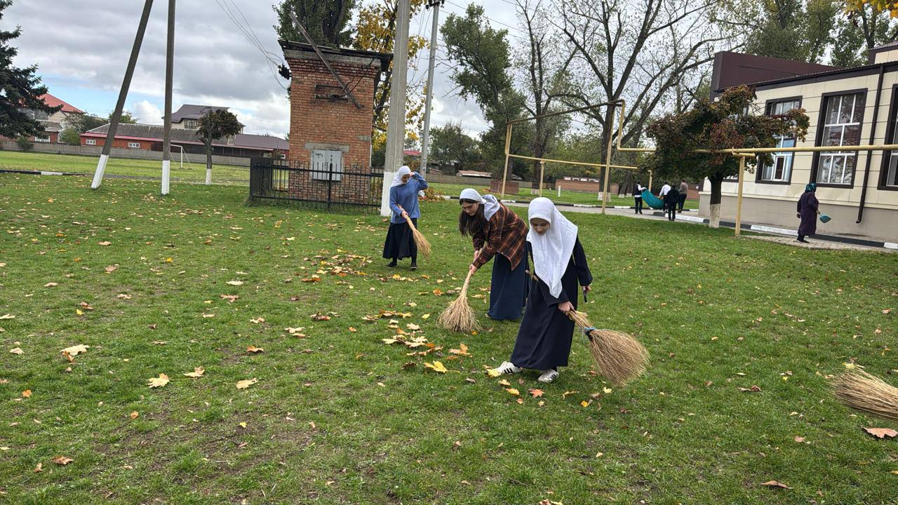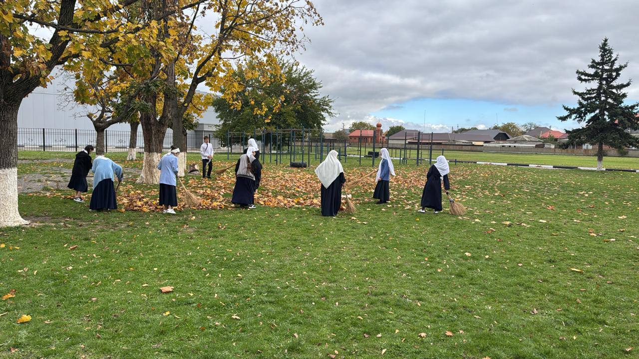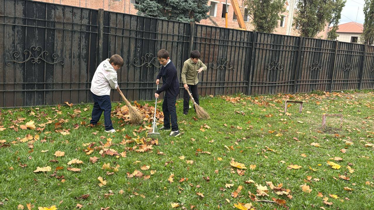 В преддверии осенних каникул вся школа собралась на масштабный субботник! Ученики, учителя и родители дружно убирали территорию: подметали листья, сажали новые кусты, красили скамейки и убирали мусор. Даже самые маленькие не отставали — с граблями и перчатками в руках!