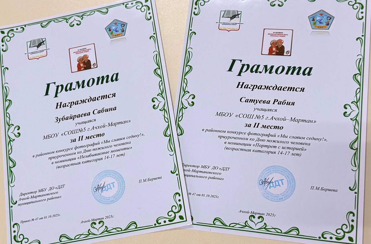Наши талантливые девочки заняли вторые места на конкурсе «Мы славим Седину», посвящённом уважению к старшему поколению. С душой и творчеством они представили номера фотографий по номинациям,полные тепла и признательности ветеранам и педагогам. Итог — заслуженные вторые места в двух номинациях!