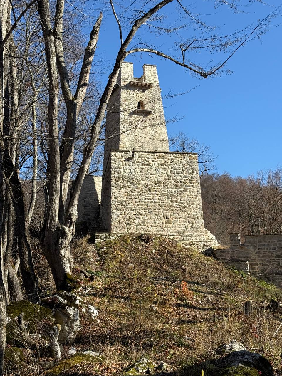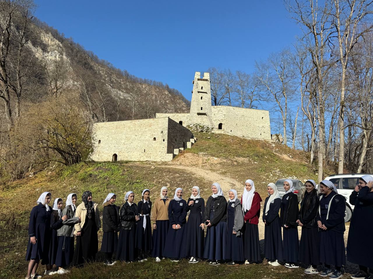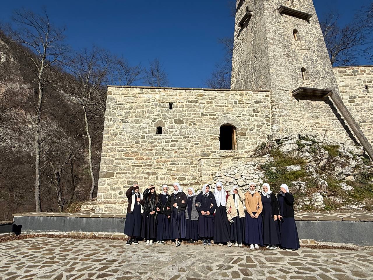 Комплекс тянется на 40 м вдоль хребта с плотной застройкой: центральная боевая башня окружена жилыми башнями, а неподалёку — склепы для защиты рода от разграблений. В 2023 году его отреставрировали, и теперь объект культурного наследия открыт для всех в Аргунском историко-архитектурном и природном музее-заповеднике. Девчонки были в восторге от древних башен и историй — это урок патриотизма и уважения к корням!