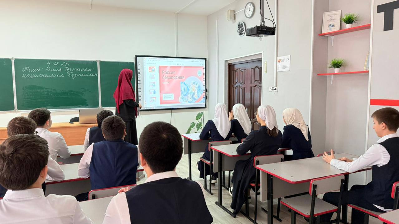 04.12.2025Сегодня в СОШ №5 г. Ачхой-Мартан, как и по всей стране, прошли занятия профориентационного курса «Россия — мои горизонты» на тему "Россия безопасная: национальная безопасность"!