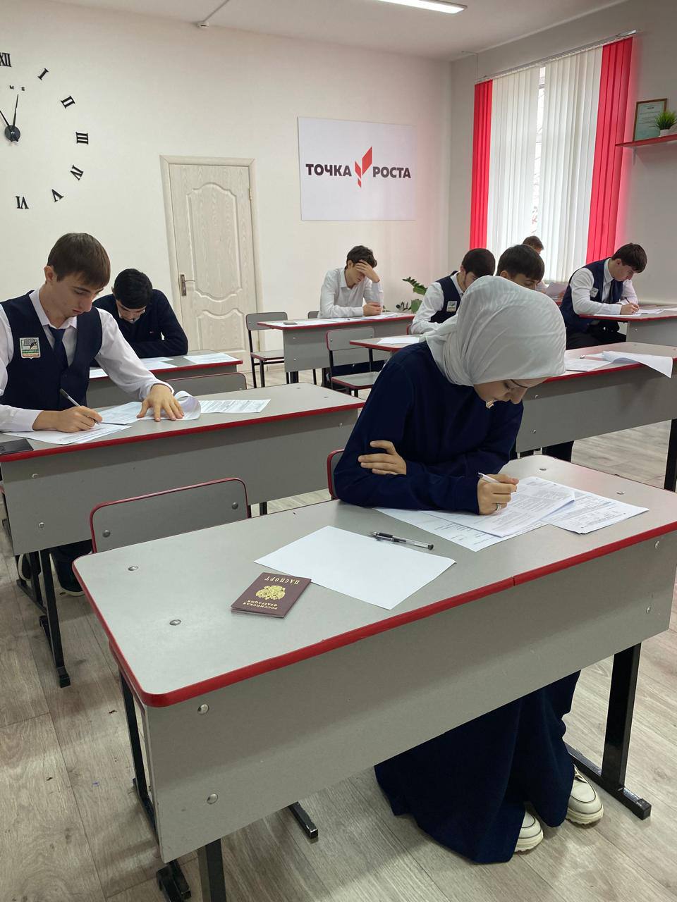 Ребята из выпускного класса сосредоточились на важном этапе подготовки: под строгим контролем, с настоящими бланками и заданиями, они отработали сочинение, грамматику и анализ текста.