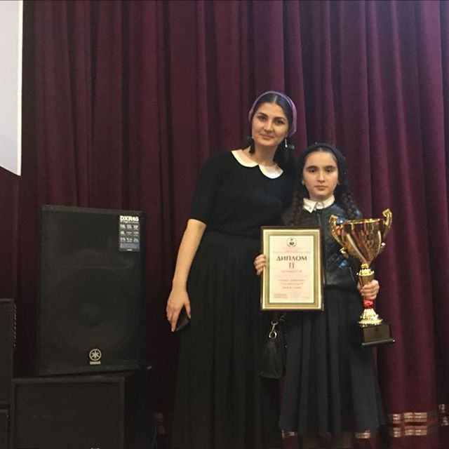 Чигарбиева Хадижат, ученица 8б класса заняла 2 место в районном конкурсе "Чечня до и после", посвященном ко Дню Конституции Чеченской Республики.
